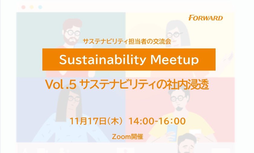 企業のブランド戦略を支援する株式会社フォワード(本社:東京都中央区、代表取締役:伊佐 陽介)は、「Sustainability Meetup Vol.5サステナビリティの社内浸透~社員の自分ごと化」を2022年11月17日(木)にオンラインにて開催致します。これまで月1回開催してきましたが、早くも5回目の開催となりました。今回は「サステナビリティの社内浸透」について情報交換をしていただければと思います。(詳細・お申込みはこちらから:https://www.forward-inc.co.jp/seminar/2022/11/17)
