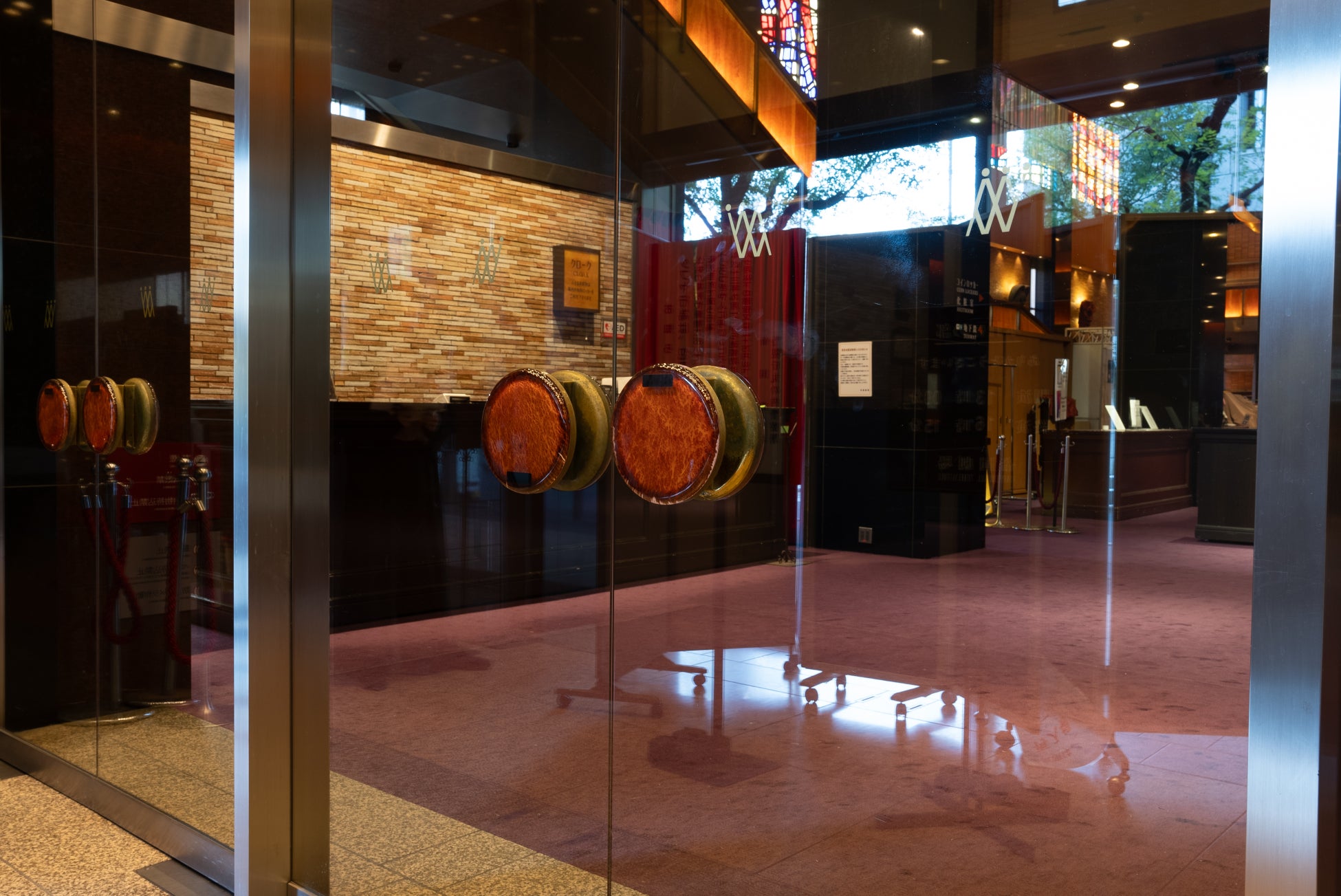 活用マテリアル:ロビー壁のレンガと入口のガラス扉