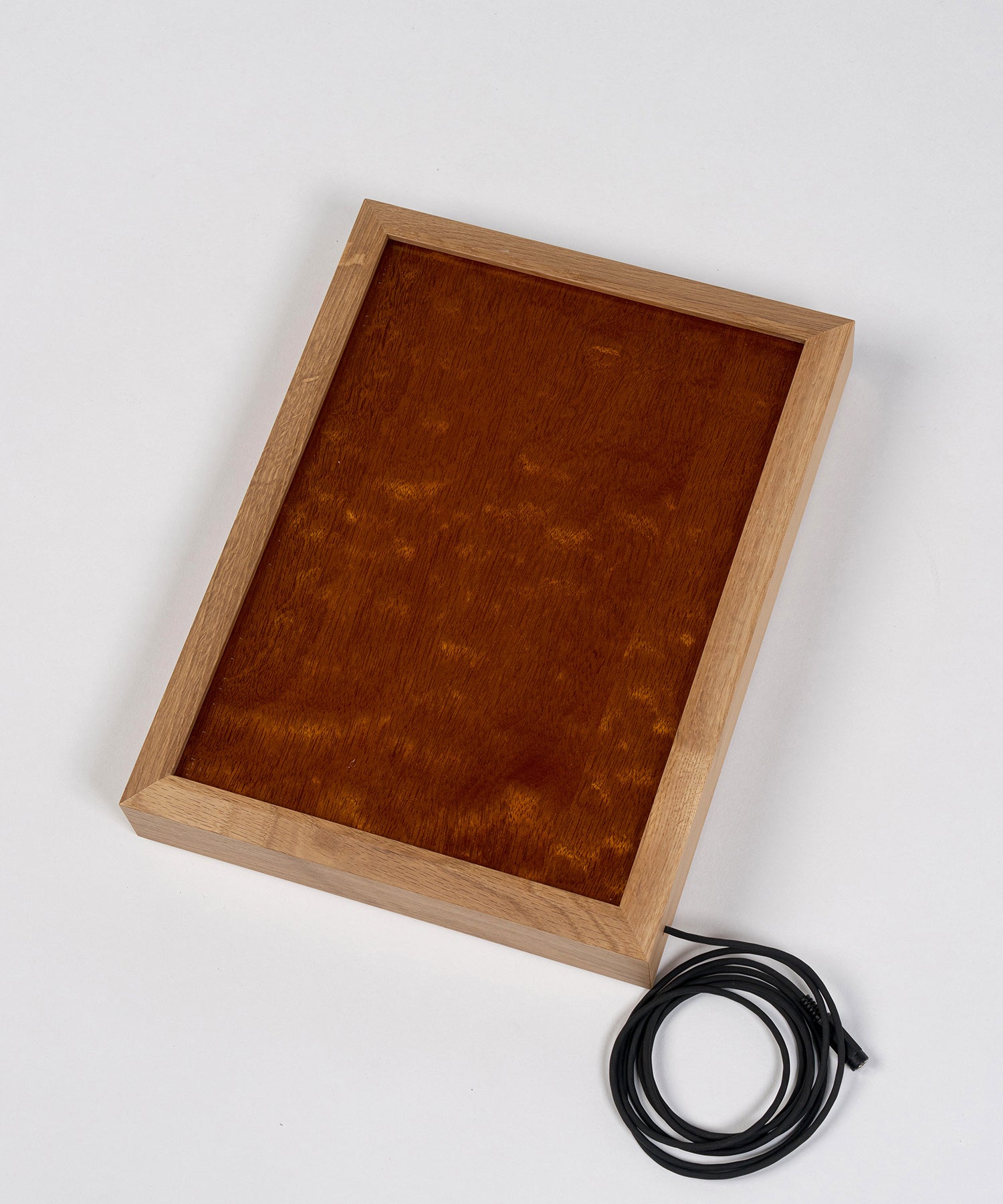 階段の手摺りを支えていた突板アクリル材は、照明とBOXの4アイテムへと活用。階段外側で使用されていたマホガニーと、内側で使用されていたトチの2種をラインナップ。特に照明は、帝劇ロビーと同じく内側下部にライトを仕込み、ロビーの雰囲気を追求した上品な仕上がりです。