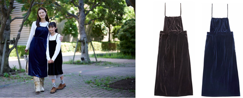 ベロア生地なのに撥水加工!家でも外でも楽しく着れる親子コーデができるキャミワンピース