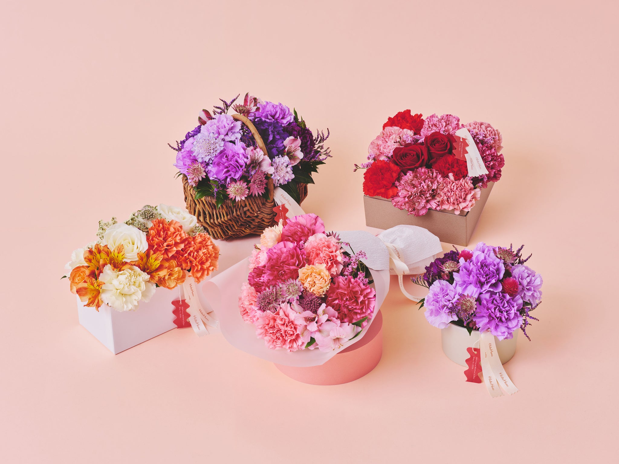 限定のカーネーションギフトは、4カラーと様々なスタイルから、お相手に喜んでいただける一品がきっと見つかるはずです。
