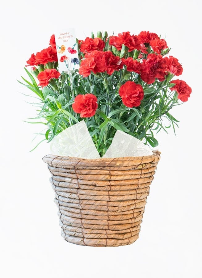 【母の日】産地直送 カーネーション 鉢植えのお花 感謝の気持ち 5号 ブラウンバスケット/岩手 岩手園芸からお届け
