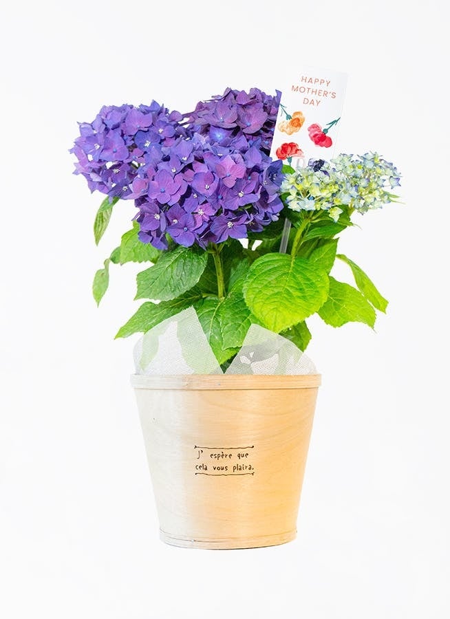 【母の日】あじさい 鉢植えのお花 ディープパープル ウッドポット