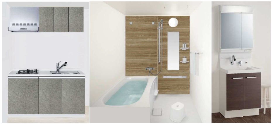 基本機能を兼ね備えた、快適性と機能性、清潔感あふれるシステムキッチンです。コンロはグリル付きで、火力の強い2口タイプを採用。カウンターは高級感ある人造大理石で、日々の家事にも重宝します。さらに、耐久性に優れたステンレス製のシンクを採用し、水撥ねがしにくい深さを確保。他にも、レバー一本で温度と水量が調節できるシングルレバー混合水栓や油煙を効率よく吸収する整流板付レンジフード、調理の際に手元を照らしてくれるLED棚下照明など、充実の設備を揃えました。