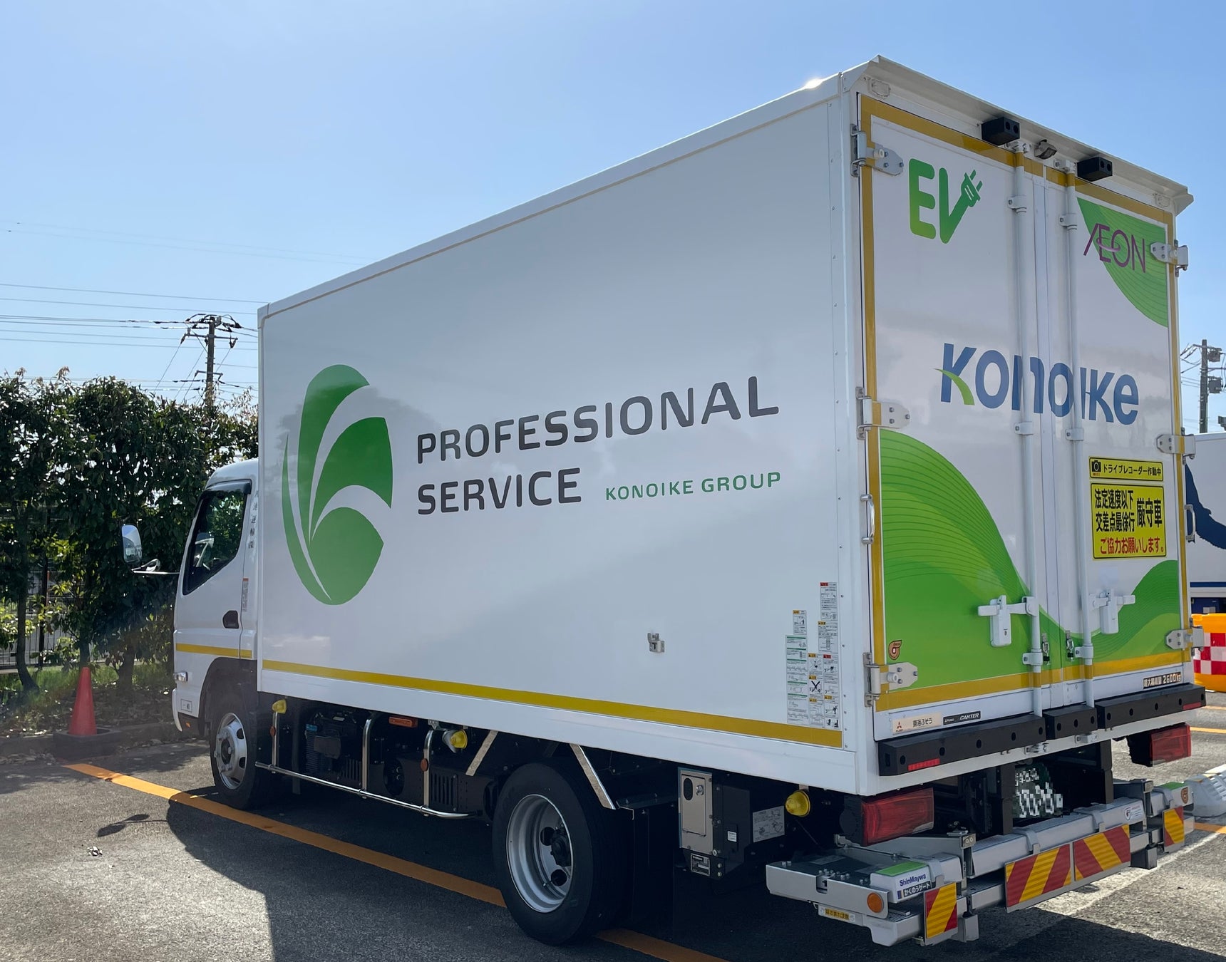 鴻池運輸株式会社 (本社:大阪市中央区、代表取締役会長兼社長執行役員 鴻池 忠彦、以下 鴻池運輸)は、CO2 排出量削減への取り組みの一環として、静岡県内のイオングローバルSCM株式会社受託センター2拠点で、イオングループ店舗配送用に冷凍冷蔵器付きEVトラックを3台導入し、2025年1月より運用を開始しています。KONOIKEグループではEVトラックの導入は初となります。