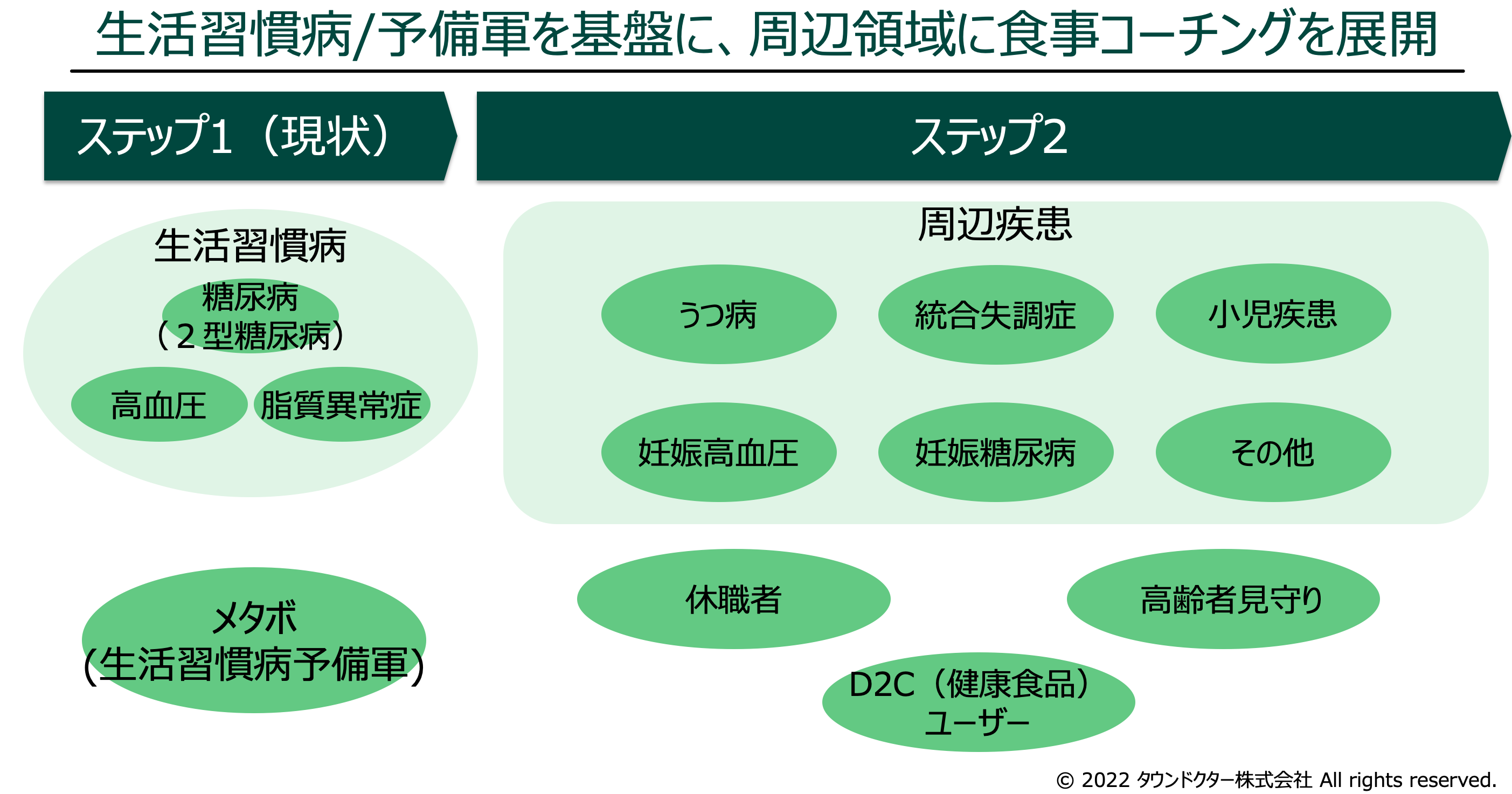 また、住友生命はWaaSエコシステム(※1)構築に向けた取組みの中で目指す「患者のQOL向上」の実現に向けて、経営メンバーに医師や管理栄養士等の専門家が在籍し生活習慣病患者向け食事指導プログラム「N・Partner」を提供するタウンドクター株式会社とともに、特定の疾病罹患者に対する食事コーチングの提供を目指し共同調査を開始したことを発表しました。