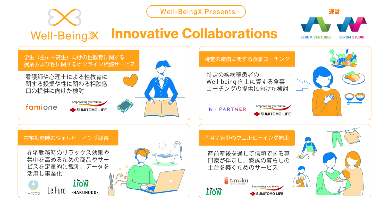 『Well-BeingX』一年目の成果として、大企業及びスタートアップの事業共創案件を発表~ウェルビーイングに資する教育、可視化、在宅ワーカー向けのサービス等の領域で事業共創を開始~