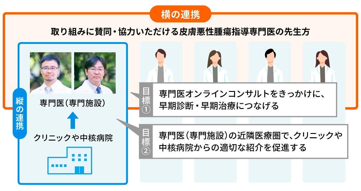 診断・治療の根本的な課題を解決するためには、クリニックや中核病院の医師と皮膚悪性腫瘍指導専門医の連携強化が重要なポイントになります。