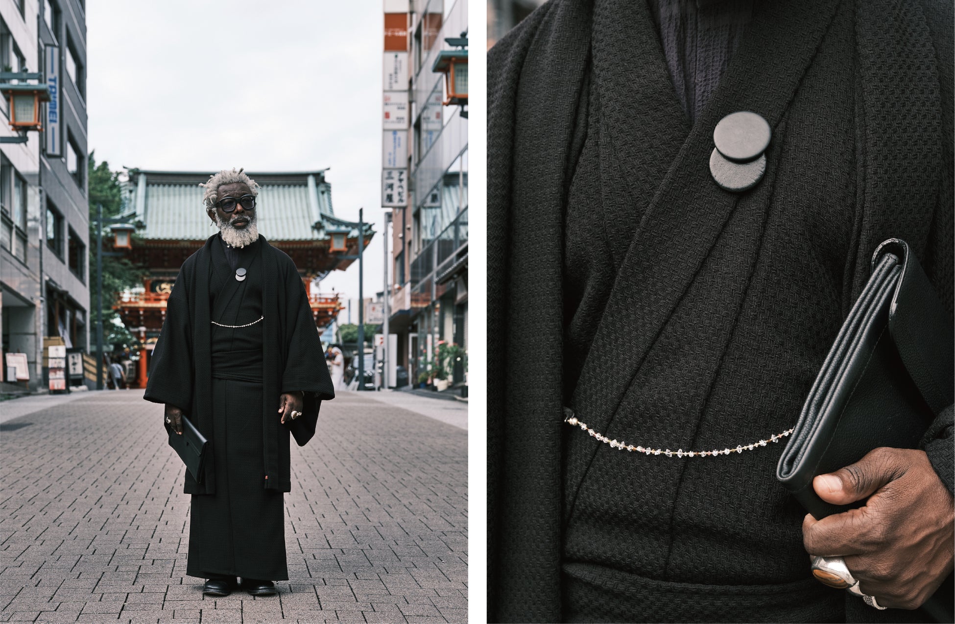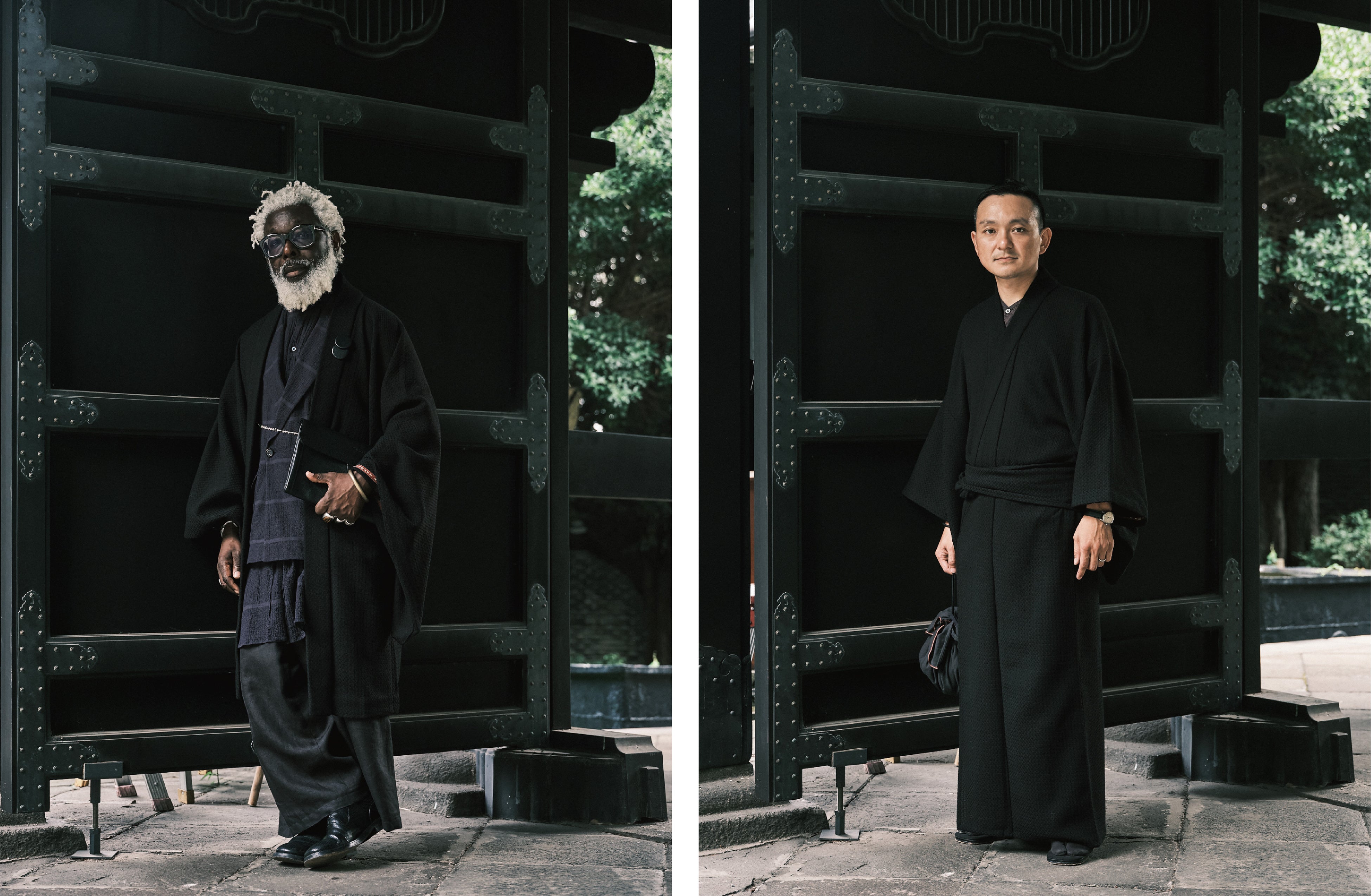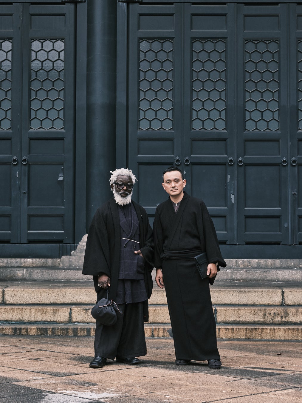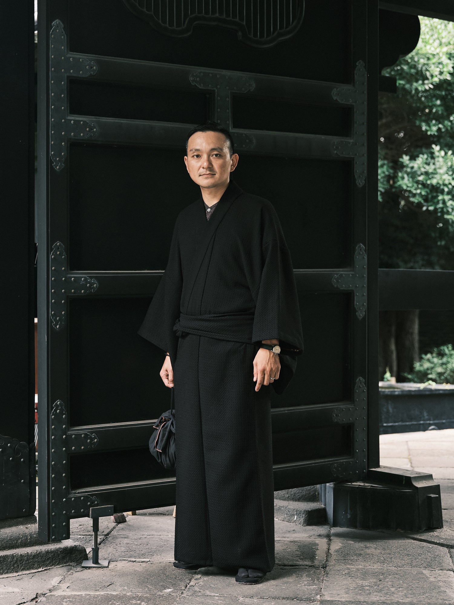 「着物を儀式用の衣服としてだけではなく、メンズのワードローブの新しい定番として、スーツやジーンズと並べて、日常の装いとして提示する」という共通ビジョンのもと、Y. & SONS は彼とともに2017年秋冬シーズンより、着物や羽織を作り続けています。