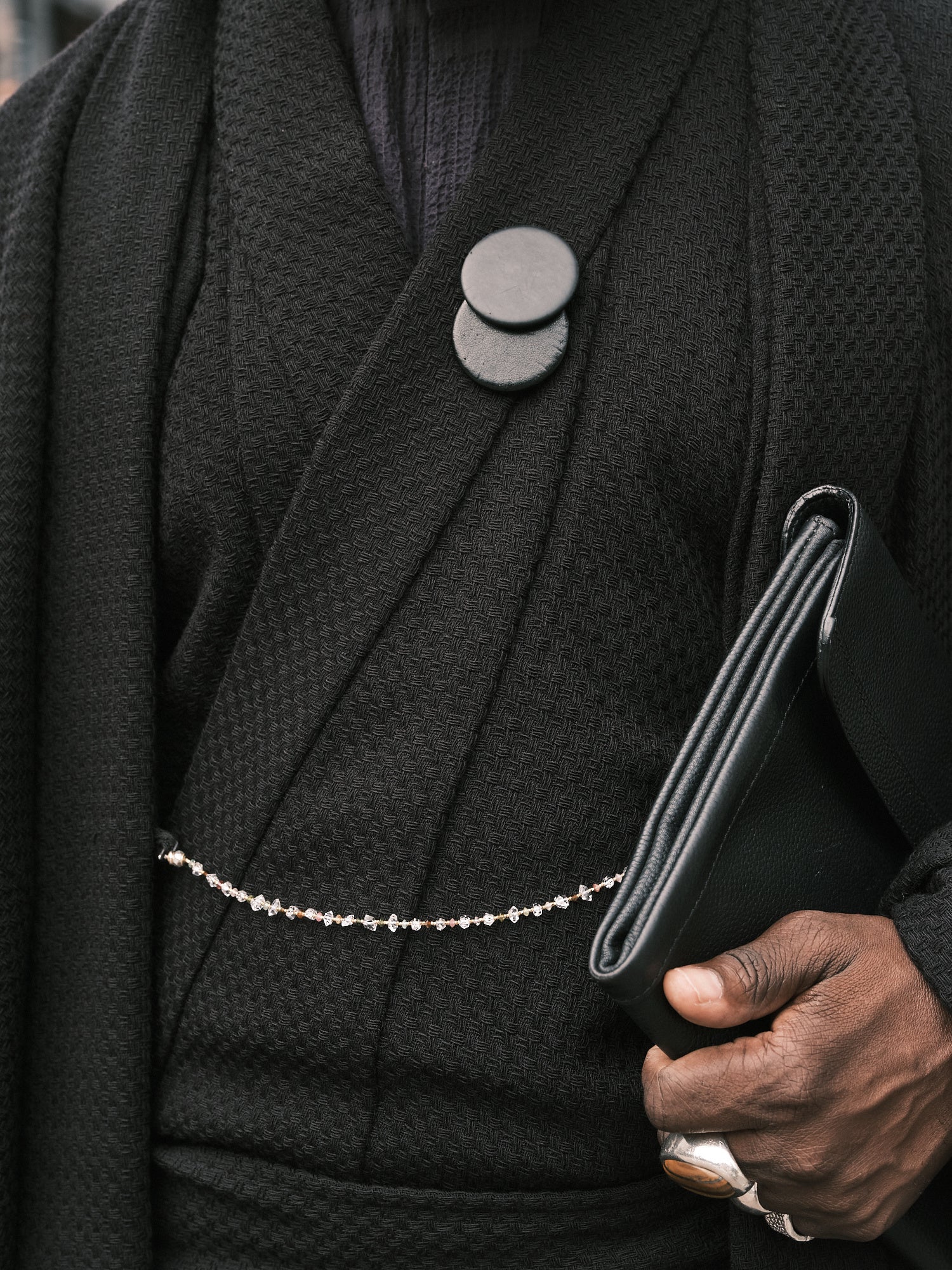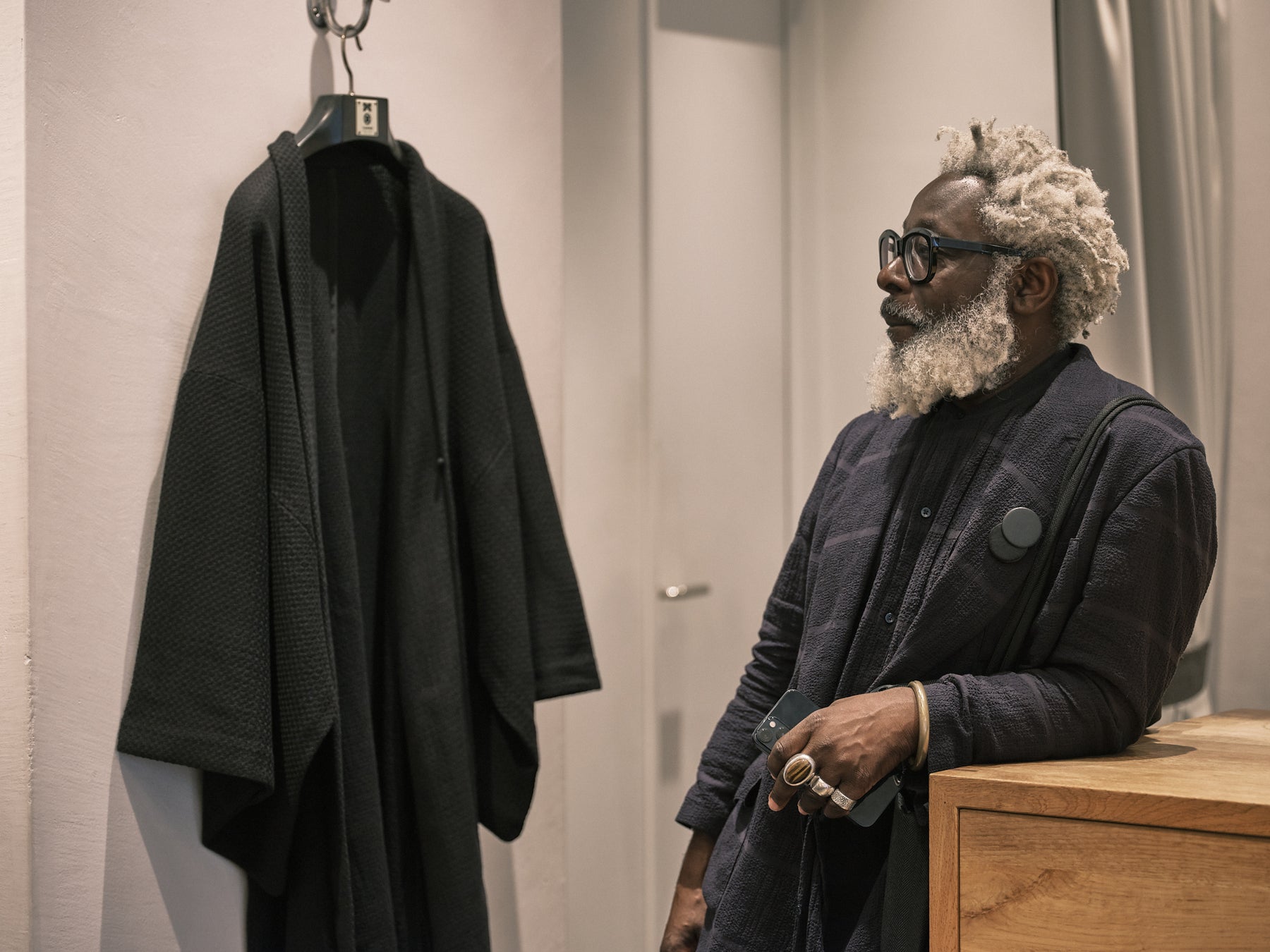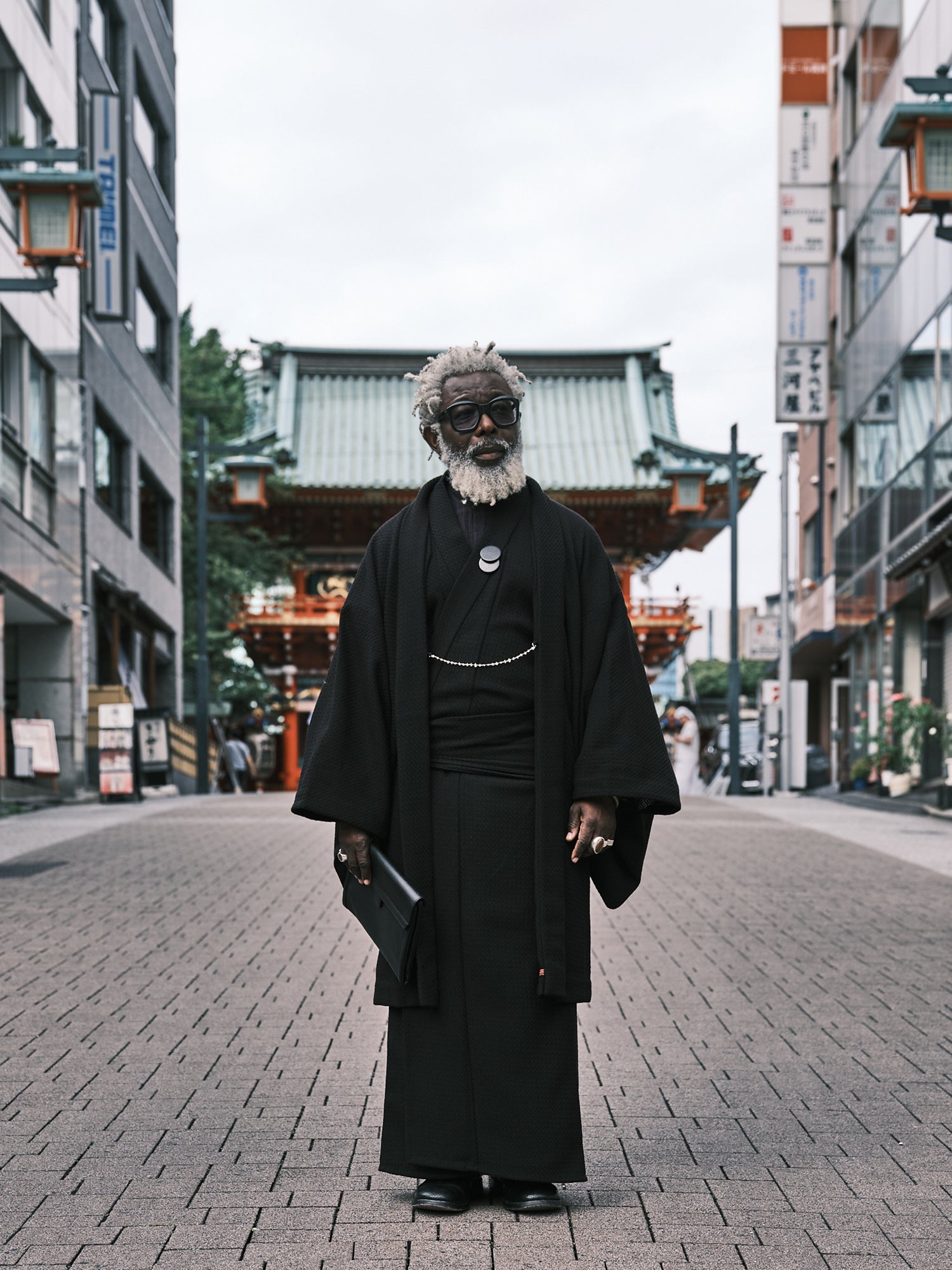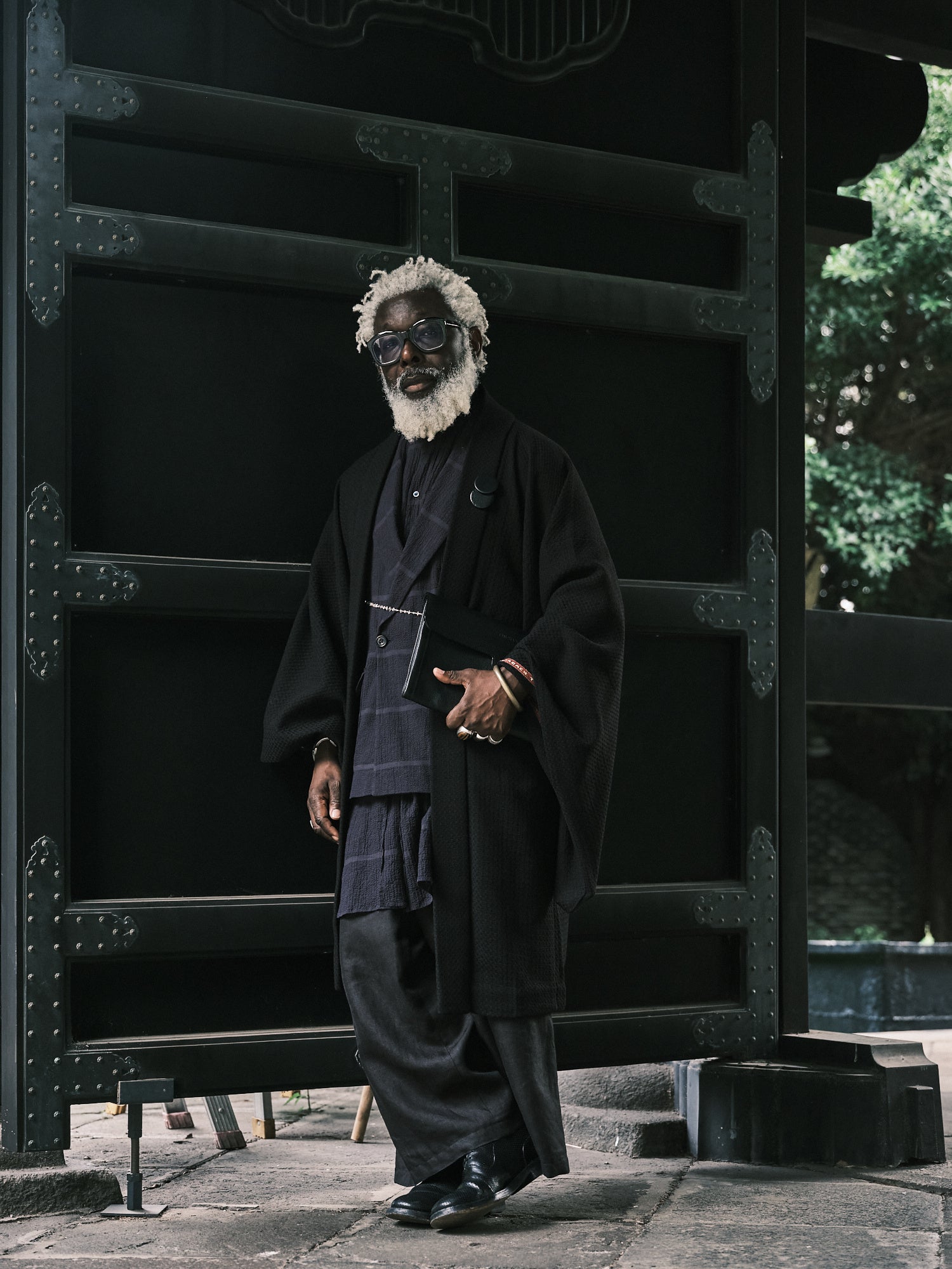 「着物を儀式用の衣服としてだけではなく、メンズのワードローブの新しい定番として、スーツやジーンズと並べて、日常の装いとして提示する」という共通ビジョンのもと、Y. & SONS は彼とともに2017年秋冬シーズンより、着物や羽織を作り続けています。