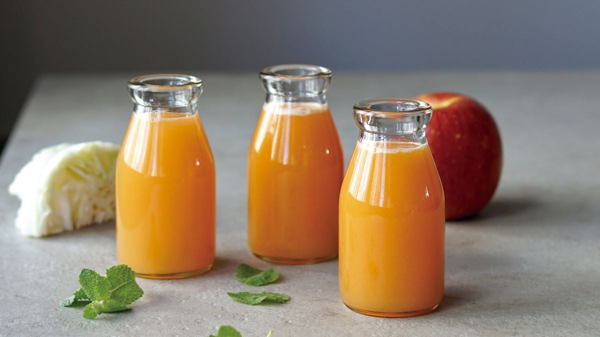 免疫力を強化するβカロテンが豊富なにんじん、体内の毒素を排出する作用のあるペクチンを含むりんご。さらに、ビタミンC、E、K、葉酸、カリウムなど健康や美容に嬉しい栄養素の詰まったキャベツをプラス。