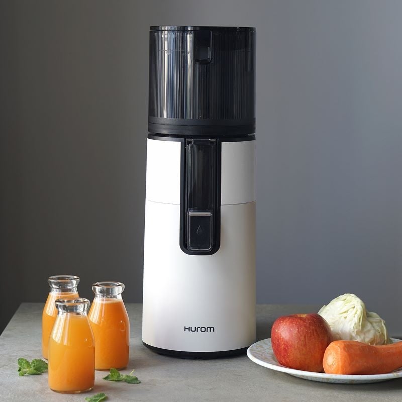 2023年9月にヒューロム スロージューサーの最上位機種として登場した「H400」は、最新のハイグレードな機能をシンプルなシルエットのなかにまとめた、あらゆるキッチンにフィットするスタイリッシュなオールインワンジューサーです。