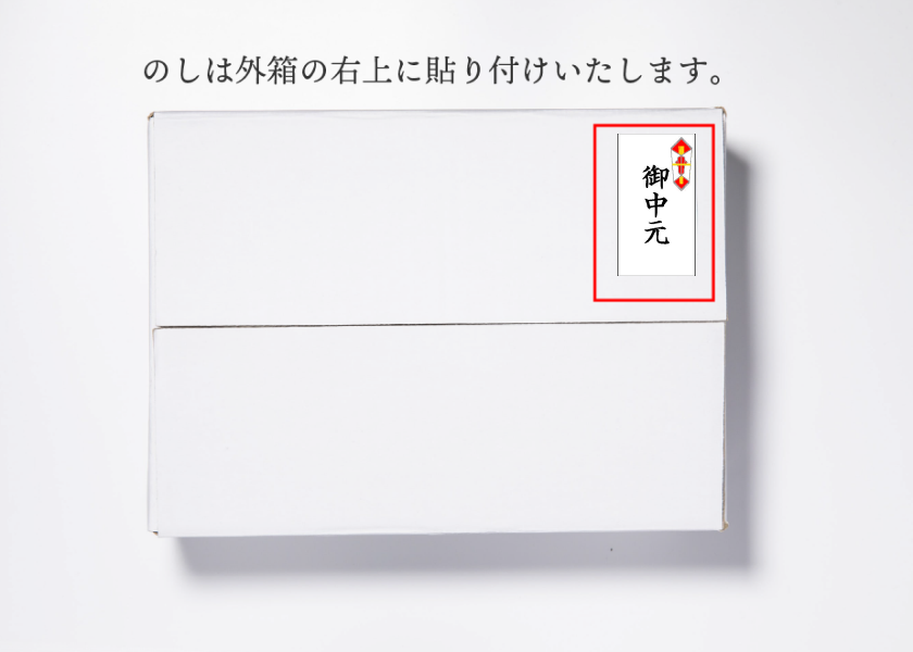 「御中元」のシールを商品外箱の右上にお付けいたします(無料)。