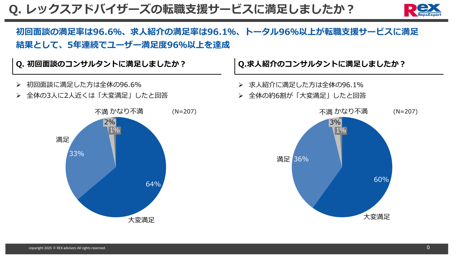 2025年のレックスアドバイザーズ利用満足度アンケートの結果より
