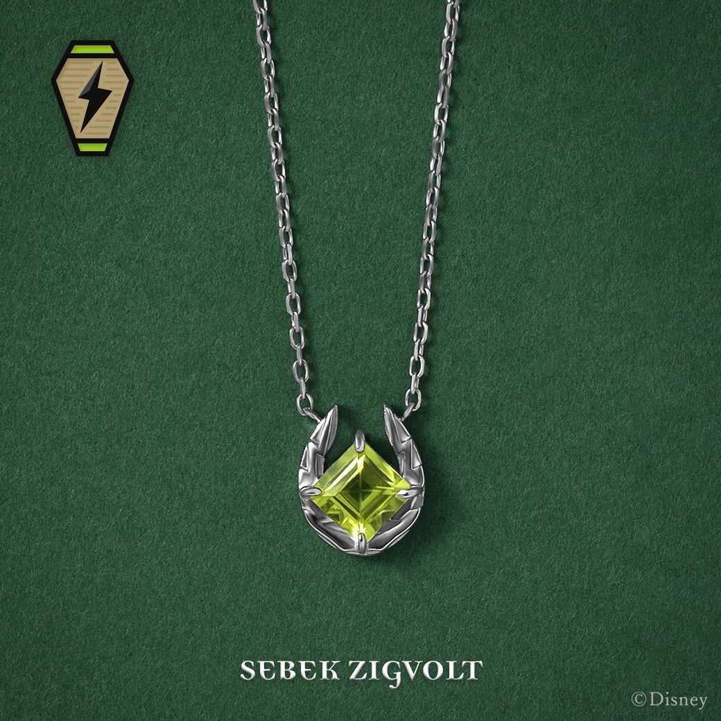 「セベク・ジグボルト」のアイコンに描かれている雷をイメージし、立体的なフォルムで表現しました。全体のデザインは馬術部に所属していることから、馬蹄の形をイメージしています。裏面には雷のモチーフをさり気なく取り入れ、メインストーンにはシャープな印象のスクエアカットのペリドットを使用しました。