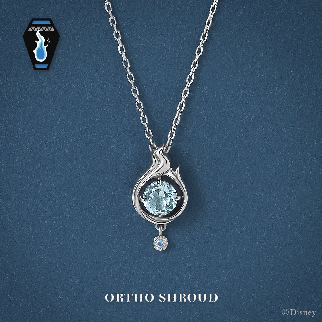 「オルト・シュラウド」のアイコンに描かれている炎をイメージし、全体のフォルムを表現しました。裏面には「オルト」のヘッドフォンからインスパイアされた三角模様を取り入れています。メインストーンにはスカイブルートパーズを使用し、下に下がった部分は、高級感のある照り返しの石枠を使用しました。