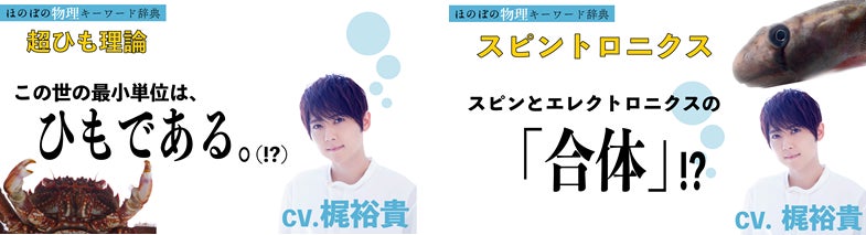今回は人気声優の梶裕貴さんが13のキャラクターを演じ分けながら、「超ひも理論」や「スピントロニクス」など13の最先端の物理をテーマとした動画を4回(4/18、5/16、6/20、7/19)に分けて配信いたします。