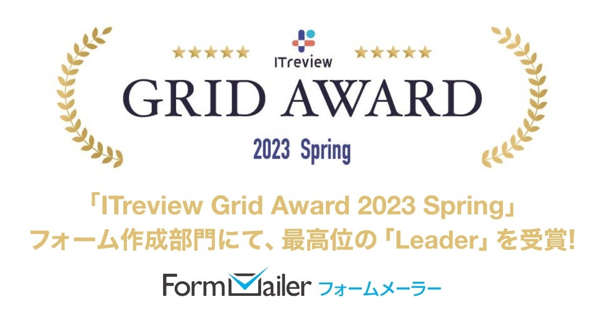クラウド型フォーム作成サービス「フォームメーラー」が「ITreview Grid Award 2023 Spring」で最高位・Leaderを4期連続受賞