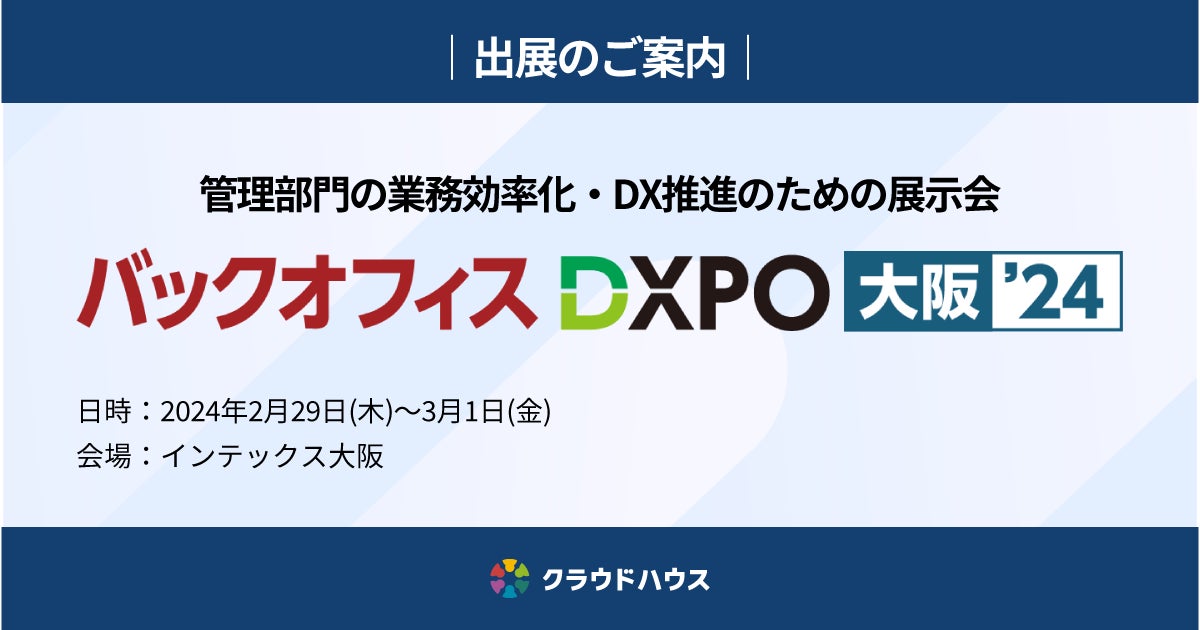 大手企業向け人事労務DXクラウド『クラウドハウス労務』、管理部門の業務効率化・DX推進のための展示会「バックオフィスDXPO 大阪’24」に出展