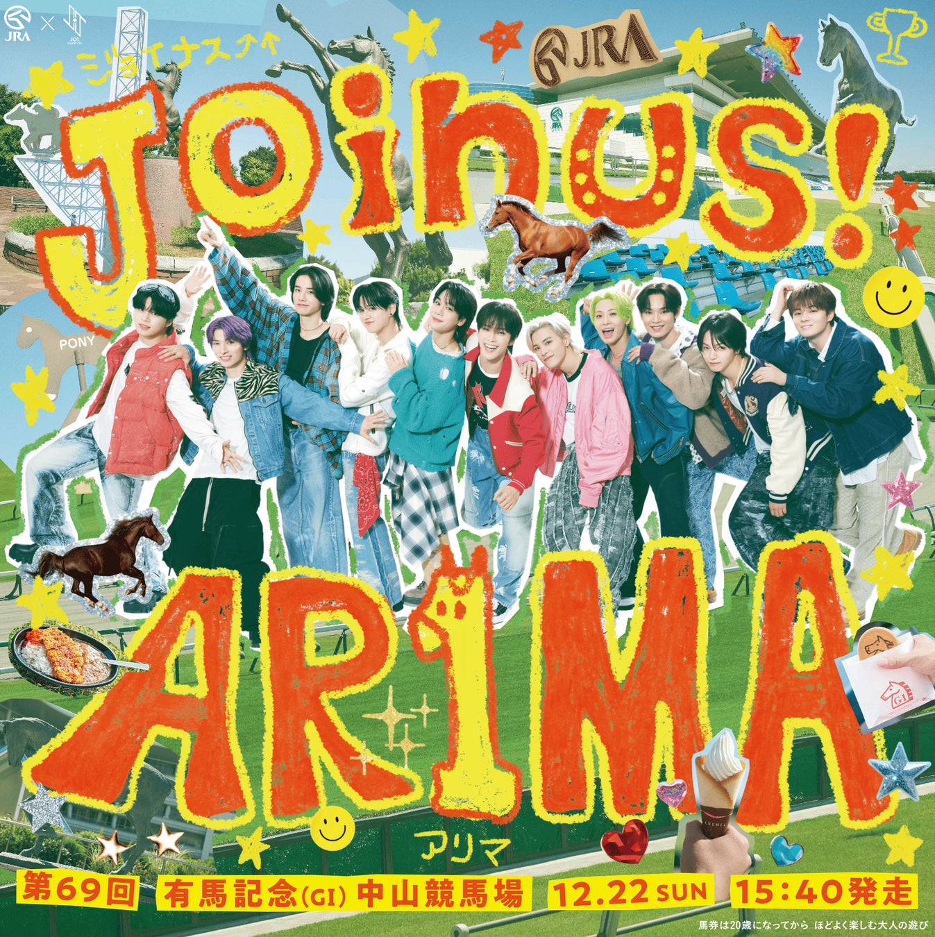 12月21日(土)、22日(日)、28日(土)は中山競馬場においてもJO1コラボイベントを実施いたします。※メンバー本人の来場はございません。