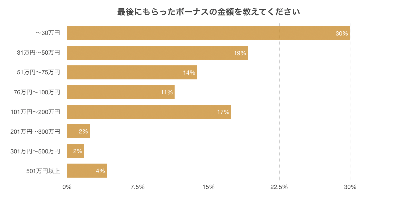 ・80%以上の人がボーナスを受け取っており、うち25%はボーナス額が100万円以上