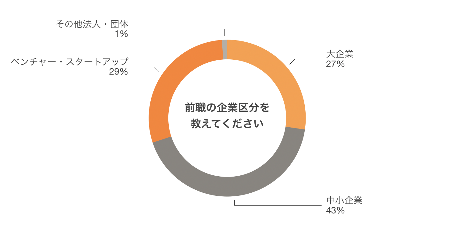 ・大企業や中小企業など異なるフェーズの企業から、ベンチャー・スタートアップ企業に転職した人が64%という結果に。