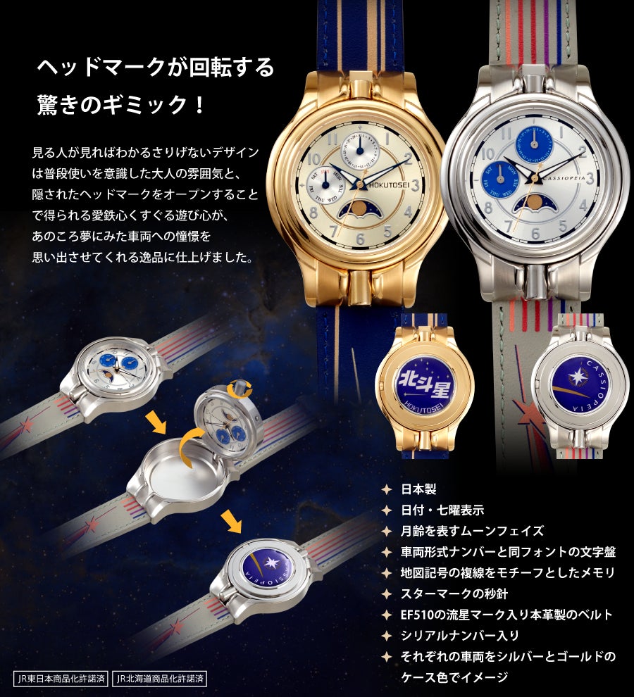 北斗星・カシオペアモチーフの鉄道リバーシブル時計 先行予約発売開始