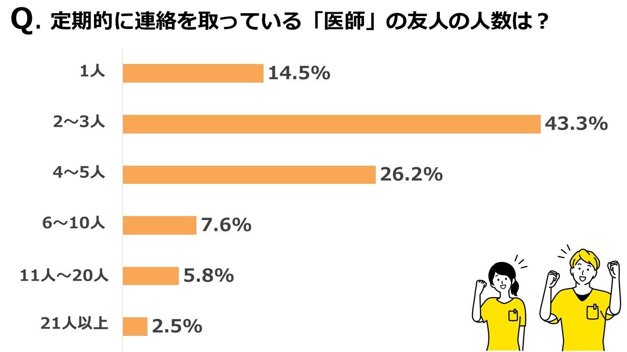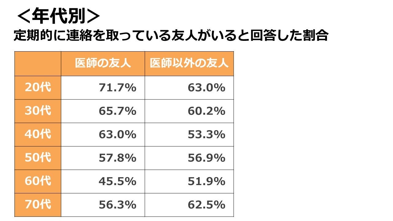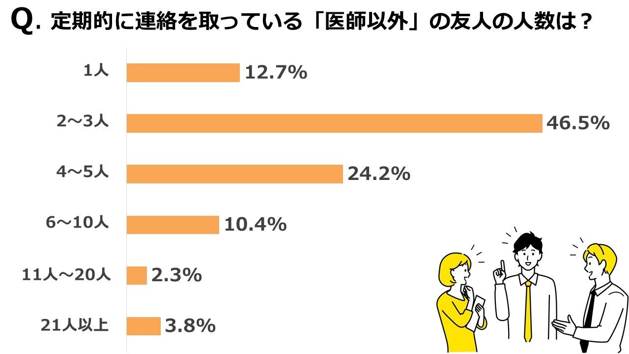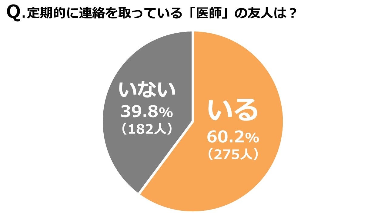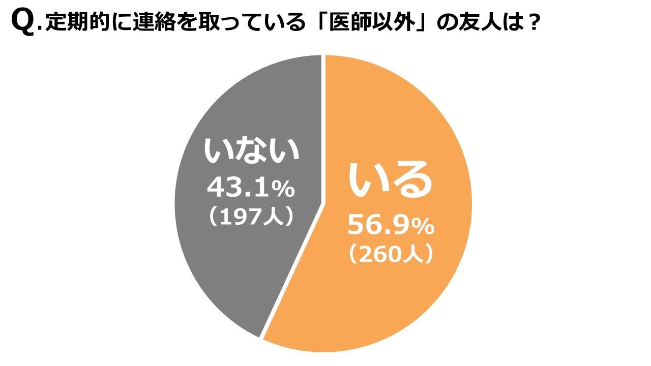 - 過半数の医師は定期的に連絡を取っている友人がいる
