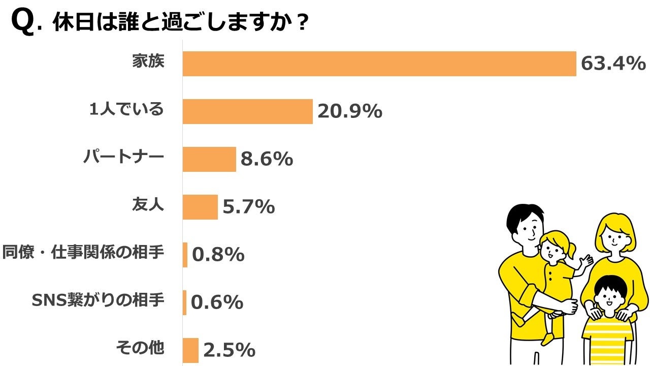 「家族」という回答がもっとも多く、続いて「1人でいる」が2位でした。