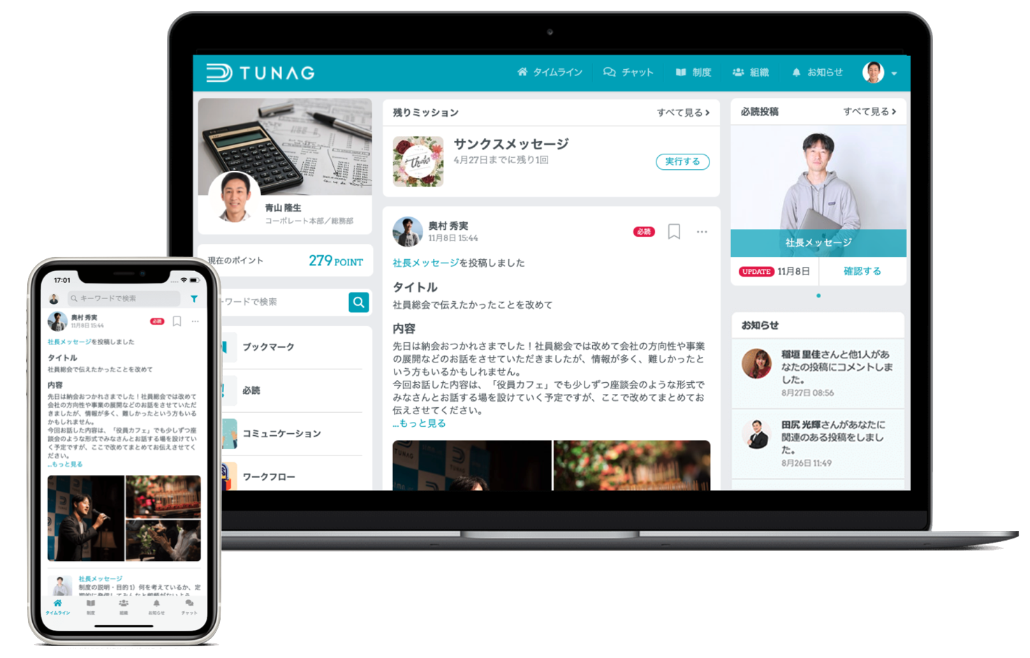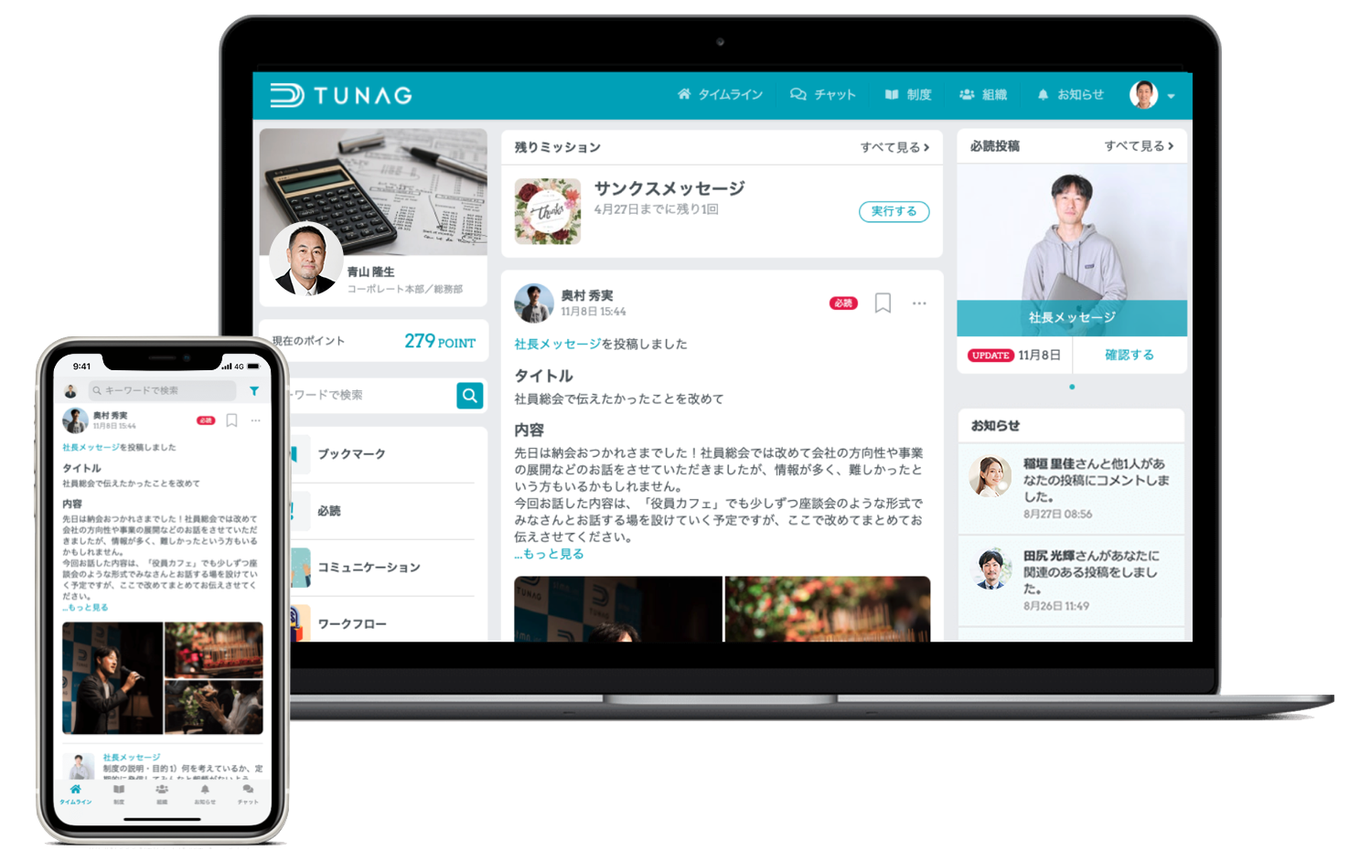 『TUNAG』 エンゲージメント経営プラットフォーム https://tunag.jp/ja/