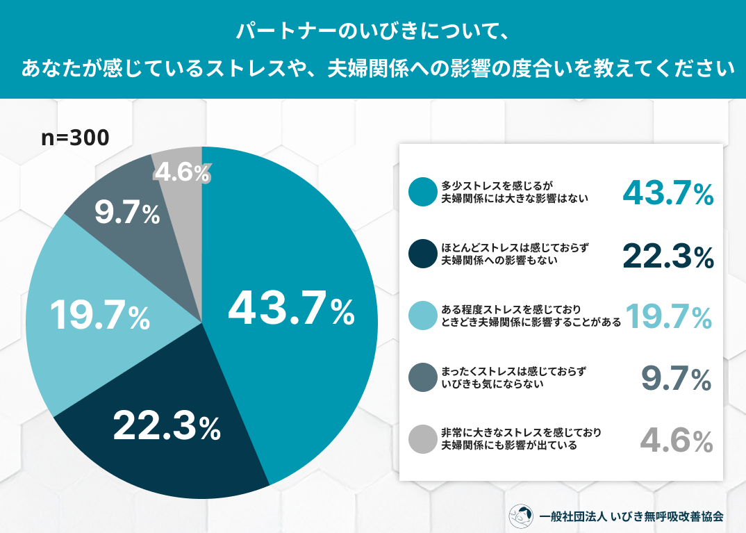 まったくストレスは感じておらず、いびきも気にならない:9.7%