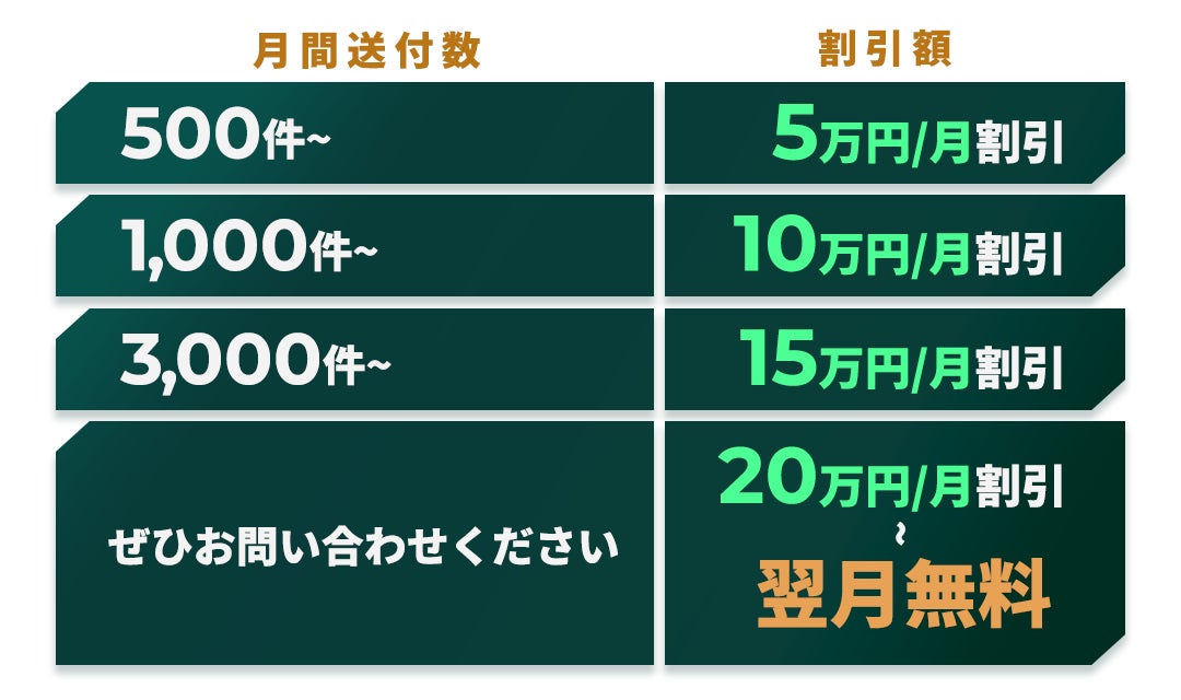 当月に貴社の『CEOclone』を送付すれば送付するほど、次月の請求が安くなります。