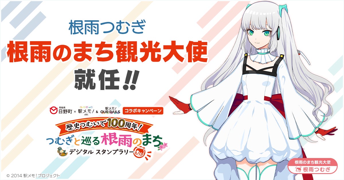 本キャンペーンは、2022年12月2日(金)からJR西日本 伯備線の根雨駅などの鉄道駅および沿線の観光地を巡るデジタルスタンプラリーや、コラボグッズの販売、ノベルティの配付など、さまざまな企画を実施予定です。また、「駅メモ!」シリーズのでんこ「根雨つむぎ」が、鳥取県日野町より任命され「根雨のまち観光大使」に就任します。