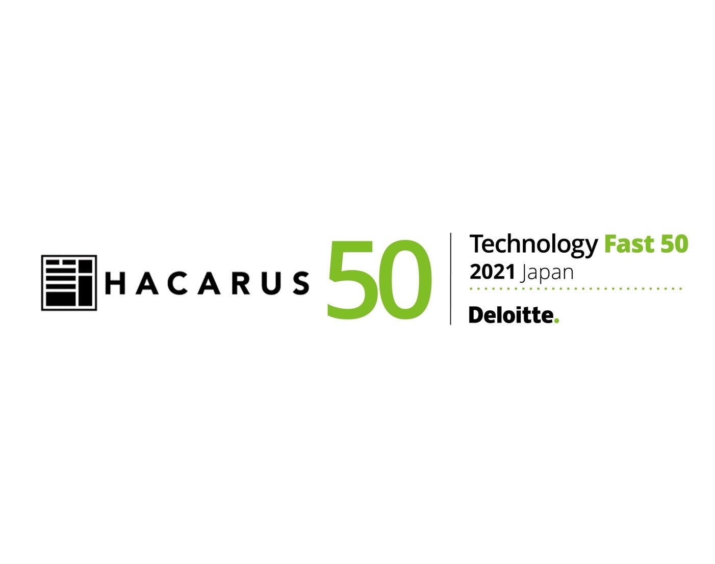 株式会社HACARUS(本社所在地 : 京都市中京区 代表:藤原健真 )は、デロイト トーマツ グループが発表したテクノロジー・メディア・通信(以下、TMT)業界の収益(売上高)に基づく成長率のランキング、「2021年日本テクノロジー Fast 50」において、過去3決算期の収益( 売上高) に基づく成長率310.4% を記録し、50位中15位を受賞いたしました(http://www.deloitte.com/jp/fast50)。