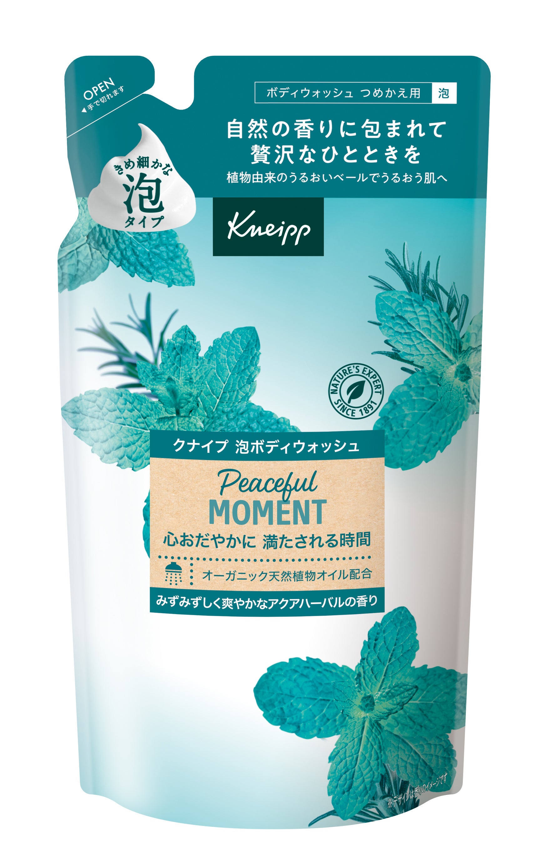 「クナイプ ピースフルモーメント シリーズ」には、2023年8月発売以来、天然ハーブの贅沢な香りで好評をいただいている泡ボディウォッシュもラインアップ。ゆっくりお風呂に浸かれない方でも、みずみずしく爽やかなアクアハーバルの香りの濃密泡が、忙しい毎日に心澄みわたるような時間を提供いたします。