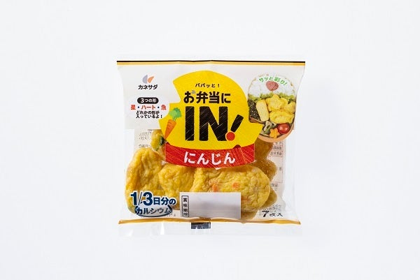 本商品は、お弁当に詰める食材に欠かせない彩りと栄養バランスを意識し、お魚すり身と野菜の素材を活かして商品化しました。『お弁当にIN!にんじん』には1袋あたり1/3日分のカルシウムが含まれており、『お弁当にIN!ほうれん草』には1袋あたり1/3日分の鉄分が含まれております。また、魚由来のたんぱく質が多く含まれているので、幅広い年代の方に召し上がっていただきたい商品です。