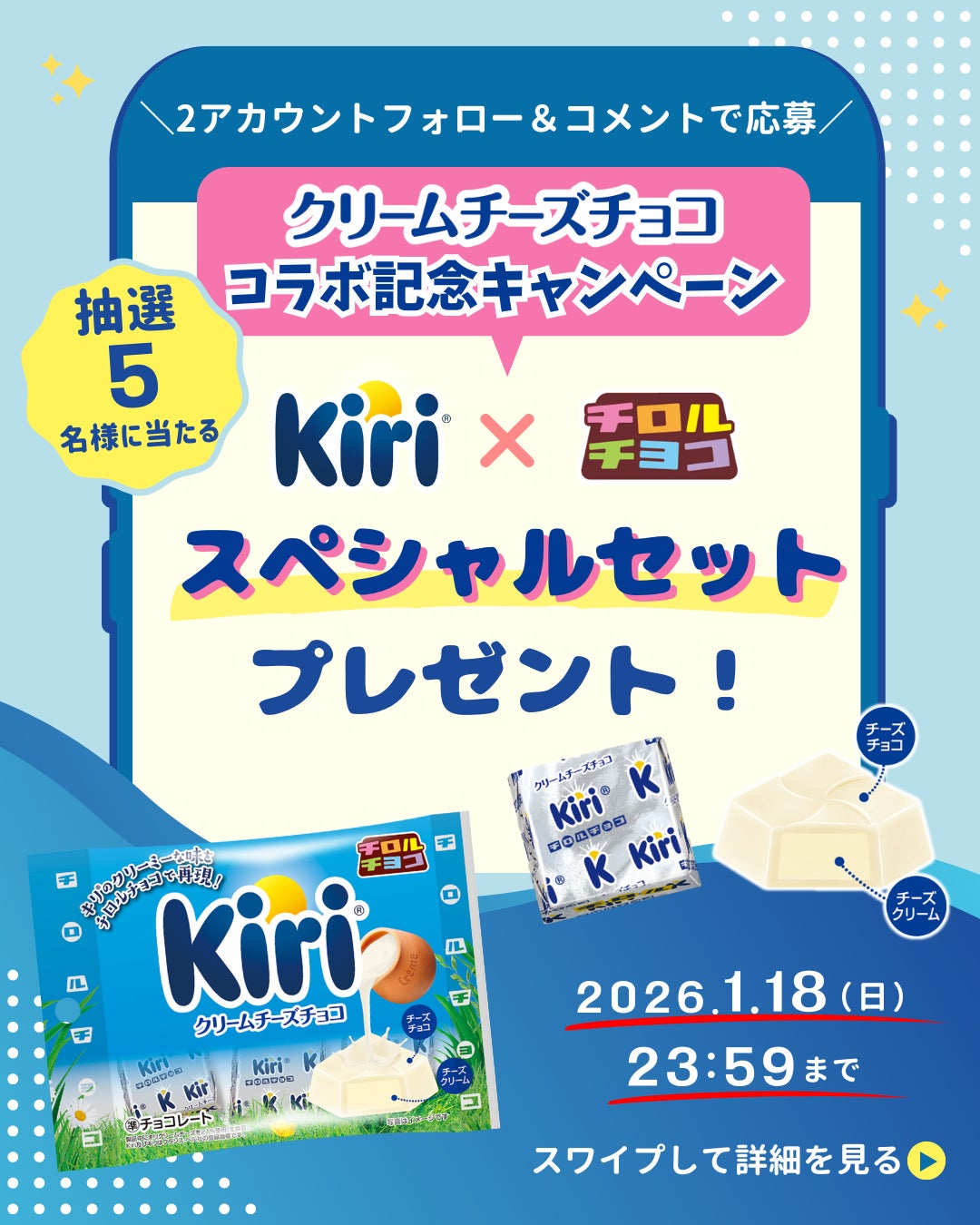 また発売を記念し、キリとチロルチョコのコラボグッズが当たる素敵なキャンペーンを2026年1月13日(火)〜1月18日(日)にて実施いたします。