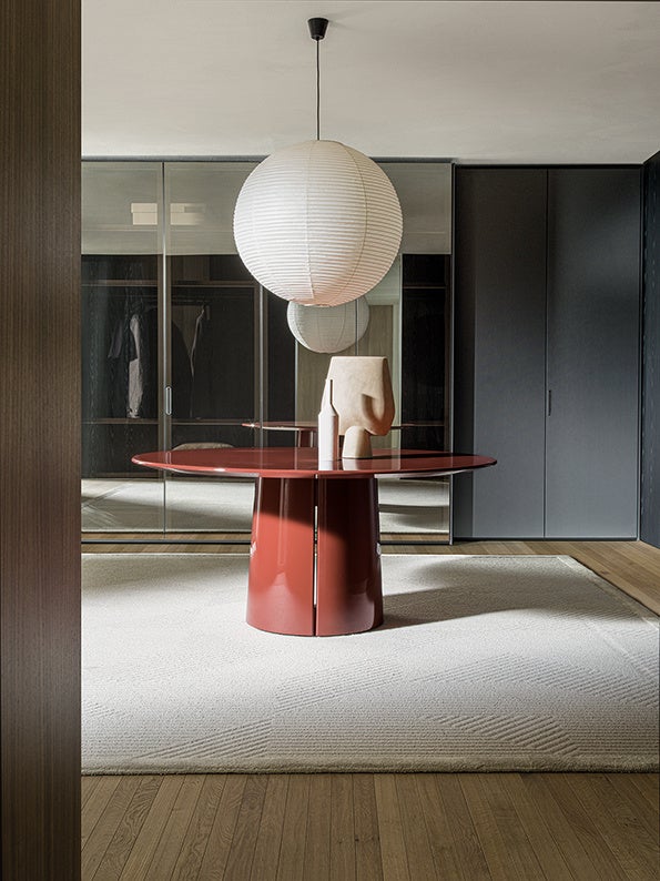 モダンなダイニングルームに新たな個性を添えるテーブルとしてVincent Van Duysen(ヴィンセント・ヴァン・ドゥイセン)が提案するMATEO(マテオ)。エレガントでミニマルなイタリア風のおもてなしの雰囲気と、居心地の良いダイニングスペースを追求する中で、ヴァン・ドゥイセンの建築的概念がテーブルの安定性と構造美、洗練されたデザインに表現されました。ゆるやかに広がる円錐型の脚部は垂直な15mmのスリットで2分割され、予想外で新鮮なデザイン要素となっています。