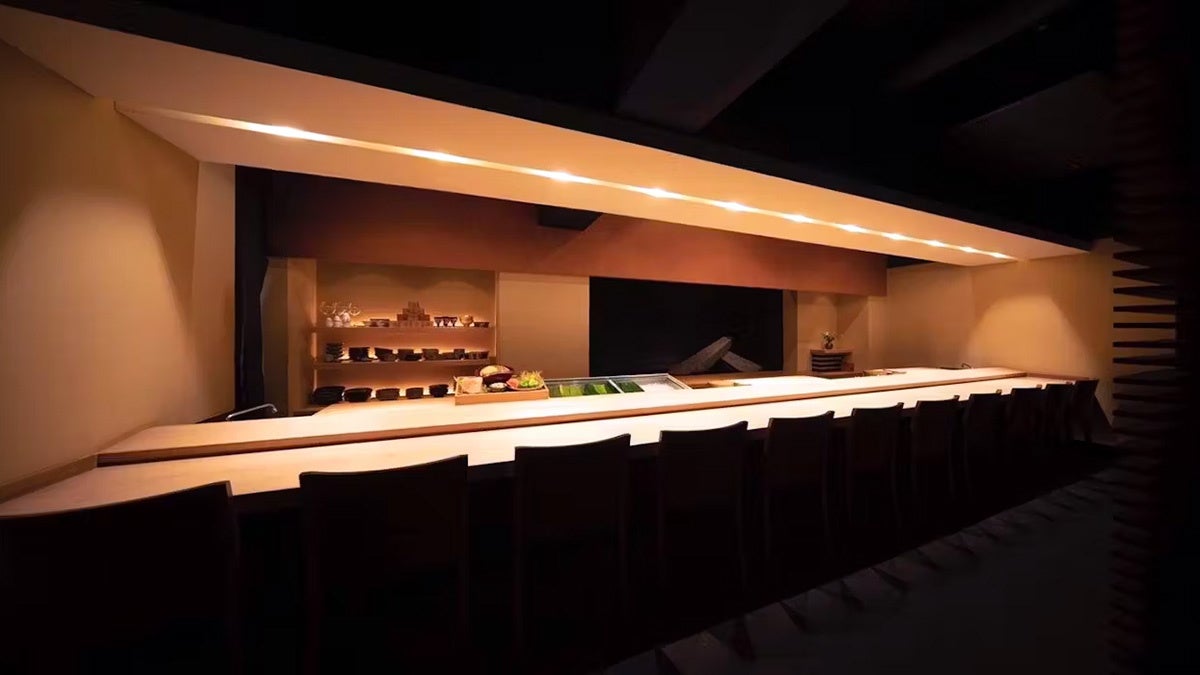 料理の鉄人・森本氏が手がけ、国内外のセレブリティに愛されるレストラン。1Fフロアでは絶品の寿司が味わえる。