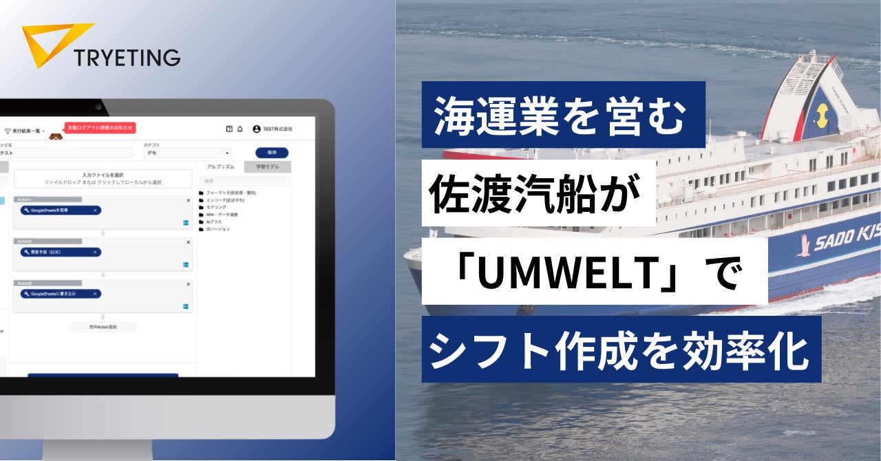 名古屋大学発AIベンチャーの株式会社トライエッティング(本社:愛知県名古屋市、代表取締役社長:長江 祐樹、以下、トライエッティング)は、佐渡島(佐渡市)と本土を結ぶ船舶を運航する佐渡汽船株式会社(本社:新潟県佐渡市、代表取締役社長:尾渡 英生、以下佐渡汽船)が、ノーコードDXクラウド「UMWELT(ウムベルト)」の組合せ最適化アルゴリズムを活用したシフト作成ツールを導入したことをお知らせします。