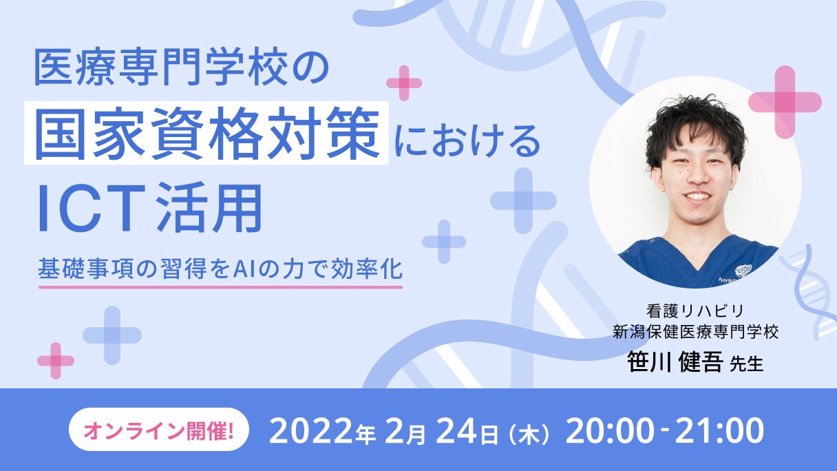 WEBセミナー『医療専門学校の国家資格対策におけるICT活用~基礎事項の習得をAIの力で効率化~』開催決定【2月24日(木)20:00-21:00 】