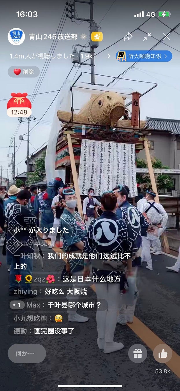 株式会社ACDとテレビ局がタッグを組んだ「青山246放送部」千葉県香取市「佐原の大祭」をWeChatでライブ配信 日本の夏の風物詩「祭り」を中国154万人が視聴、地方の魅力発信に貢献