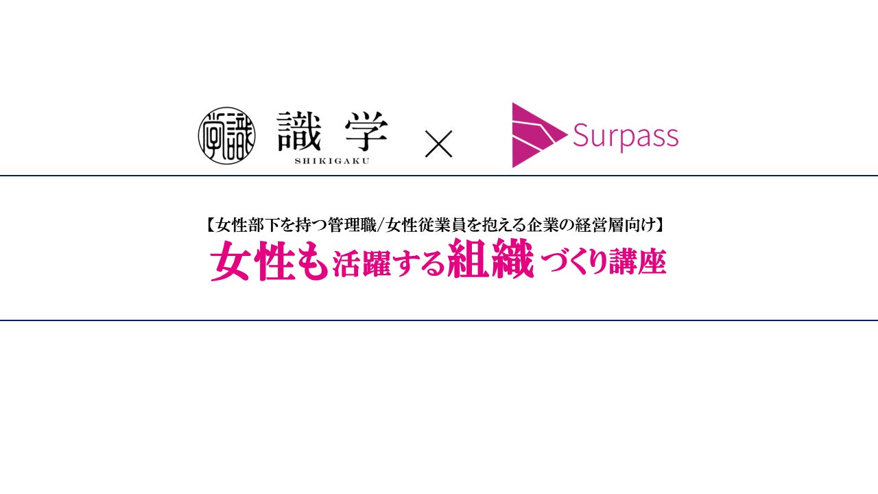 株式会社Surpass(本社:東京都品川区、代表取締役社長:石原 亮子)が運営する、女性活躍推進総研と4300社が導入したマネジメント理論を展開する株式会社識学(本社:東京都品川区、代表取締役社長:安藤 広大)が共同で 女性も活躍する組織づくり講座を開講します。