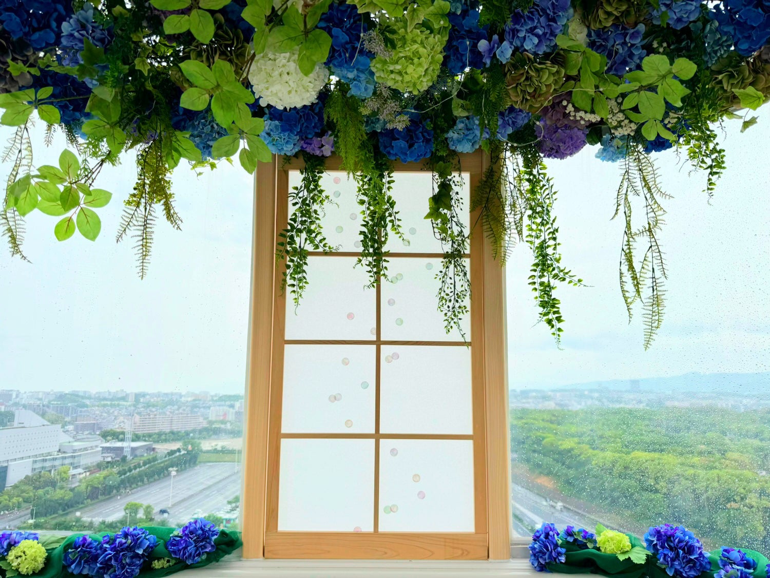 ・観覧車の入口に設置している巨大な”あじさいの壁面”は超映えスポットです