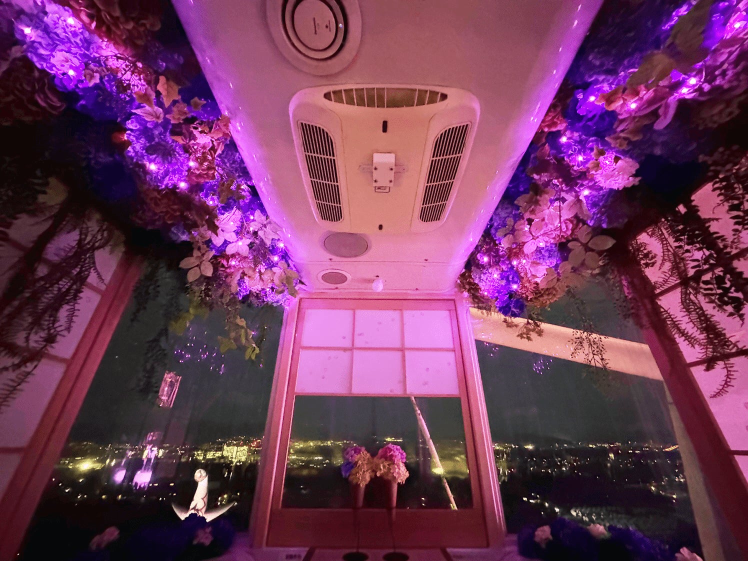 夜はゴンドラ内のあじさいがライトアップされて昼とは違った一面を楽しむことができます。