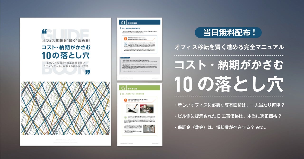 また、セミナーにご参加いただいた方限定で、当社から「オフィス移転を“賢く”進める!コスト・納期がかさむ10の落とし穴 ガイドブック」を全員にご進呈。