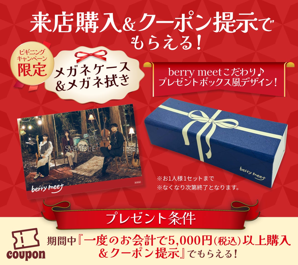 店頭にて一度のお会計で「税込合計5,000円以上」ご購入いただき、「ハートアップ×berry meetクーポン」を提示していただいた方に、プレゼントいたします。