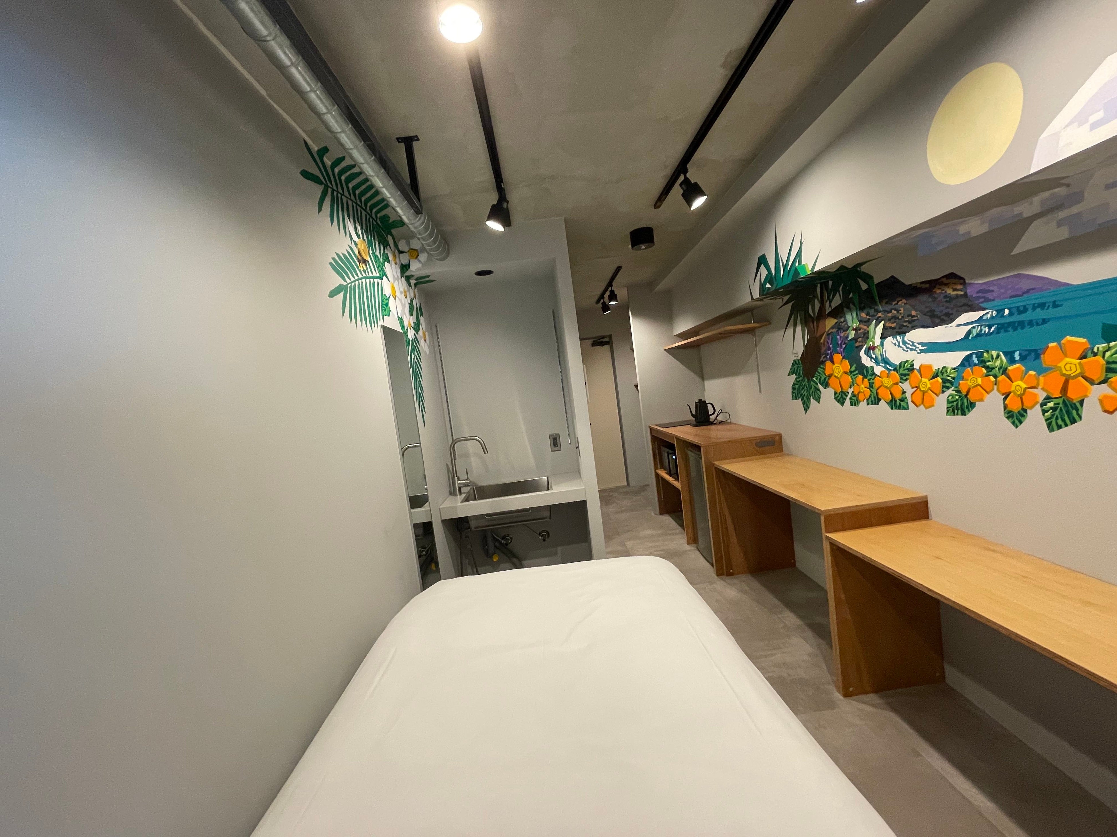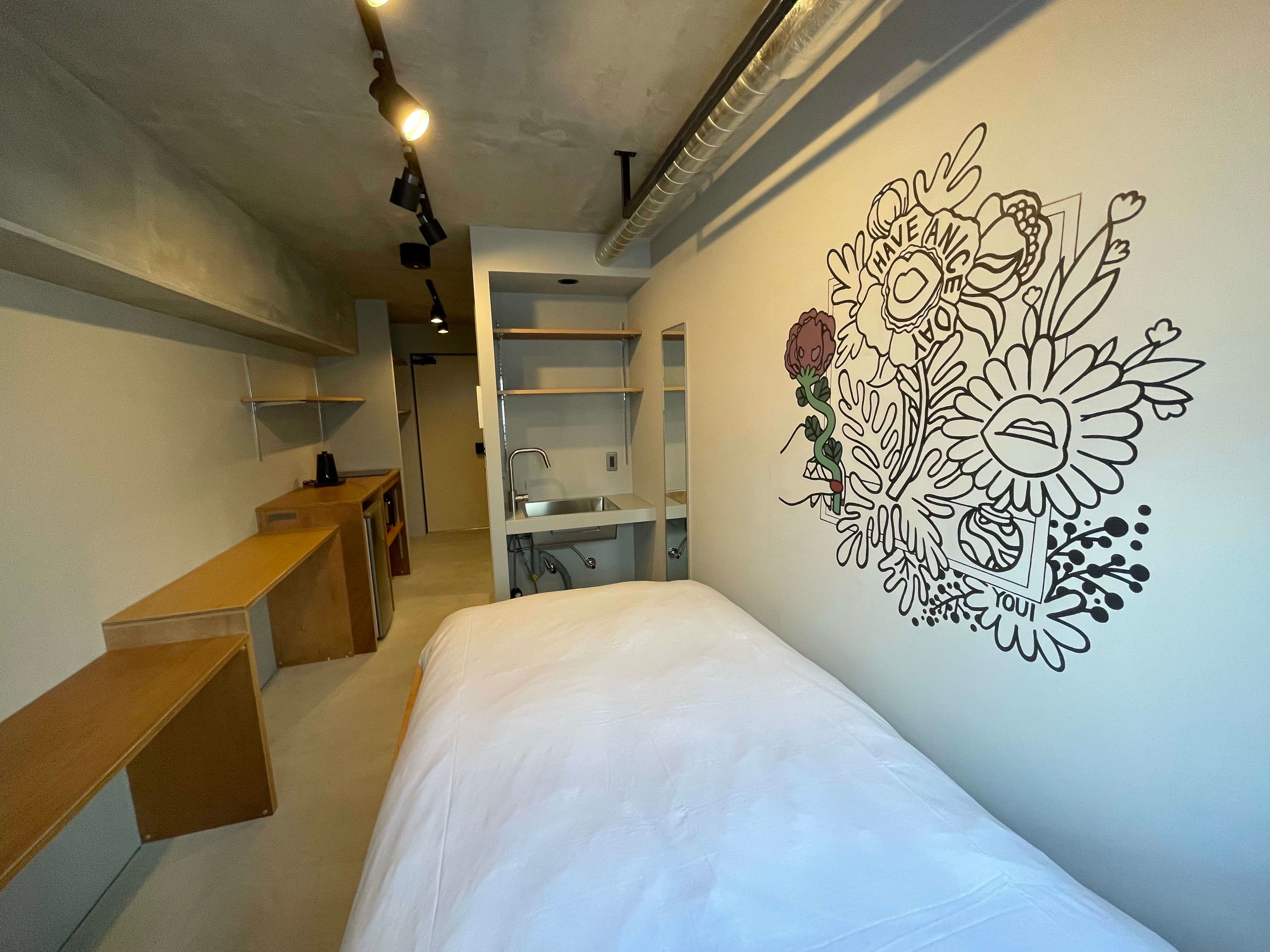お部屋ごとに楽しめるアートは当施設の特徴の1つです。アートは全て異なるアーティストに自由に描いて頂き、アーティストの個性あふれる表現となっています。