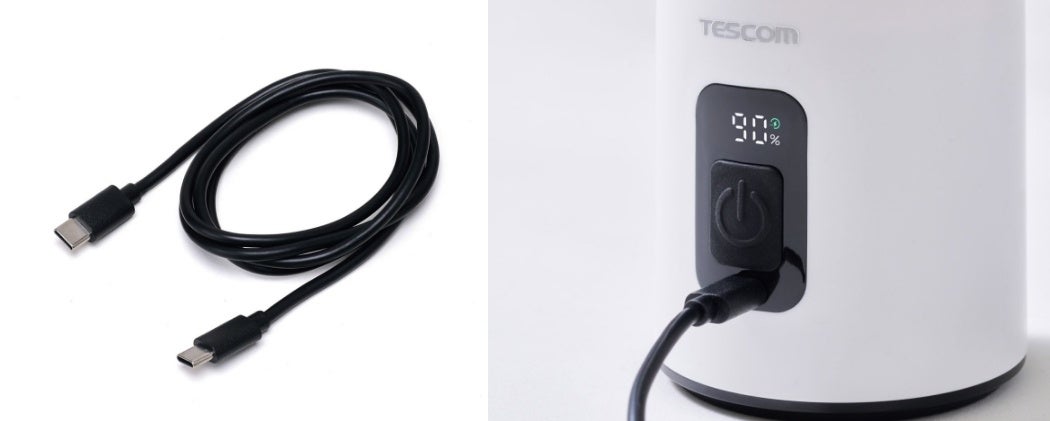 約2.5時間で満充電が可能。給電用のUSB Type-C(TM)(USB-C(TM)) - USB Type-Cケーブルが付属しています。