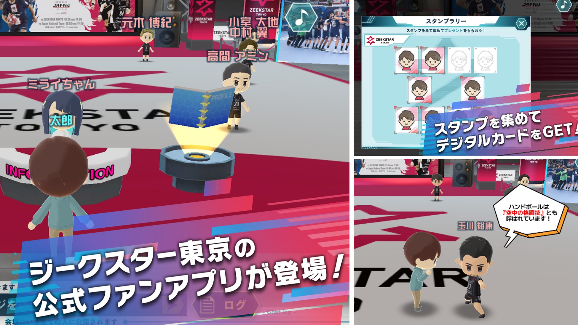 「ジークスター東京 バーチャルアリーナ」は、メタバース空間上のチーム専用コートで様々な情報発信を行うことができるとともに、アバターを介して選手とファンがコミュニケーションを取ることができます。またバーチャルアリーナに登場する選手アバターに話しかけ、スタンプを集めてバーチャル選手カードがもらえるスタンプラリー機能も提供しています。バーチャル選手カードを持っているファンは、試合会場にてリアル選手カードと交換することができるため、メタバースから試合会場への誘導を促進し、試合前~試合当日、試合後まで連動した企画の実施が可能となります。2023年3月3日よりサービスを開始したメタバース空間で採用情報を発信するコンテンツ「FUTURE Group リクルートピア」*2を、この度スポーツチームのファンマーケティングに活用できるよう拡張し、第一弾としてジークスター東京に導入いたしました。